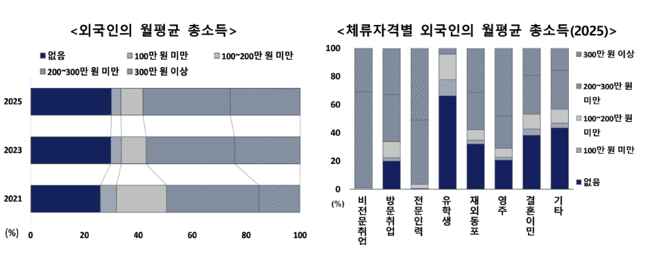 - High Earners: Over half of the professional manpower (50.9%) and nearly half of the permanent residents (48.0%) earn a monthly total income of 3 million KRW or more.